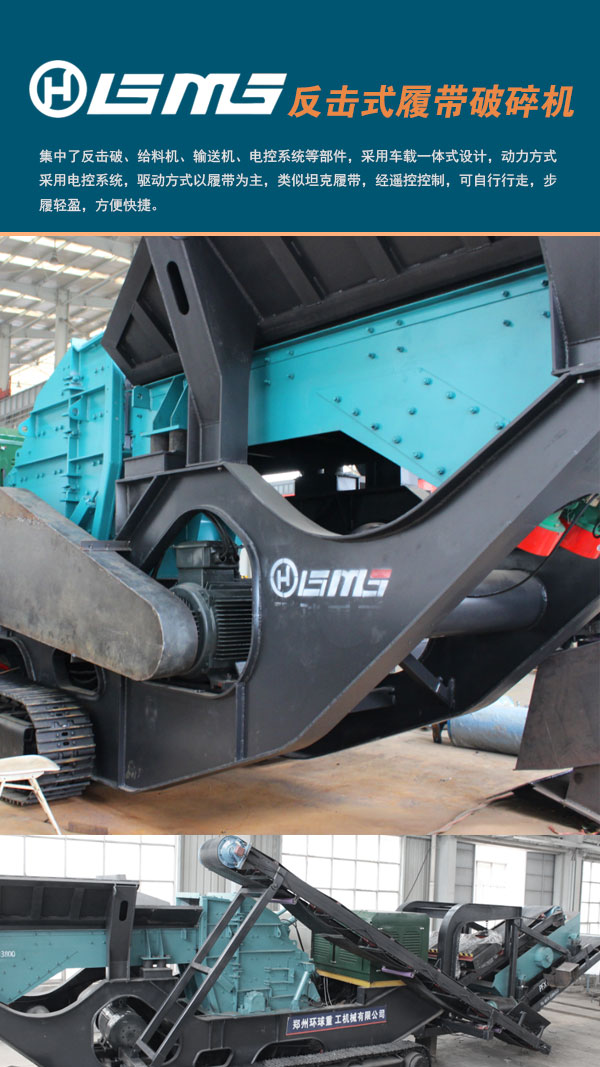 【产品别名】:车载反击式破碎机、履带移动式反击破碎机